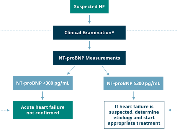 Las diectrices para el diagnóstico de la insuficiencia cardíaca aguda recomiendan que todos los pacientes para los que existe sospecha de insuficiencia cardíaca se sometan a pruebas diagnósticas con péptidos natriuréticos como NT-proBNP y, si es posible, estas se realicen como ensayo en el POC [4].